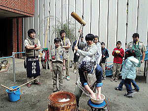 | BS GS合同餅つき--- 当日の写真は「思い出の小箱」スカウト写真館に収納しています。 |