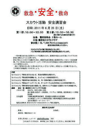 | リーダの為のスカウト安全講習会 --- 当日の写真は「思い出の小箱」スカウト写真館に収納しています。 |