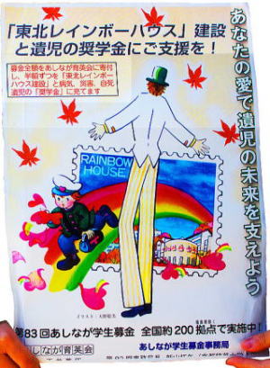 | 霊南坂スカウトクラブは . 東日本被災地の子供たちを支援します . 東日本大震災子どもの心の成長支援 . のんびり遊ぼう~ニコニコキャンプ 楽しいランチパーティーを提供 ![]() 参加申し込み児童が定員の50〜80予定の所 7月半ばで450名を越える申し込みがあり、調整中 日 時:2011年8月1日~4日 場 所:ボーイスカウト日本連盟 那須野営場 対 象:福島県相馬市周辺地域の小学生 主 催:子どもの心と身体の成長支援ネットワーク 後 援:厚生労働省、社会福祉法人読売光と愛の事業団、 日本未熟児新生児学会、 日本周産期・新生児医学会、新生児医療連絡会、赤ちゃん成育ネットワーク 協賛団体:社会福祉法人恩賜財団母子愛育会、特定公益増進法人財団法人日本YMCA同盟、 公益財団法人ボーイスカウト日本連盟、社団法人ガールスカウト日本連盟 事務局 :恩賜財団母子愛育会愛育病院内 キャンプ担当 山﨑亜子 ・ボランティアスタッフと主催ネットワーク関係の専門家(ボーイスカウト、ガールス カ ウ ト、YMCA、 児童精神科医、小児科医師、臨床心理士、グリーフケア・音楽療法士、チャイルドライフスペシャリスト) |